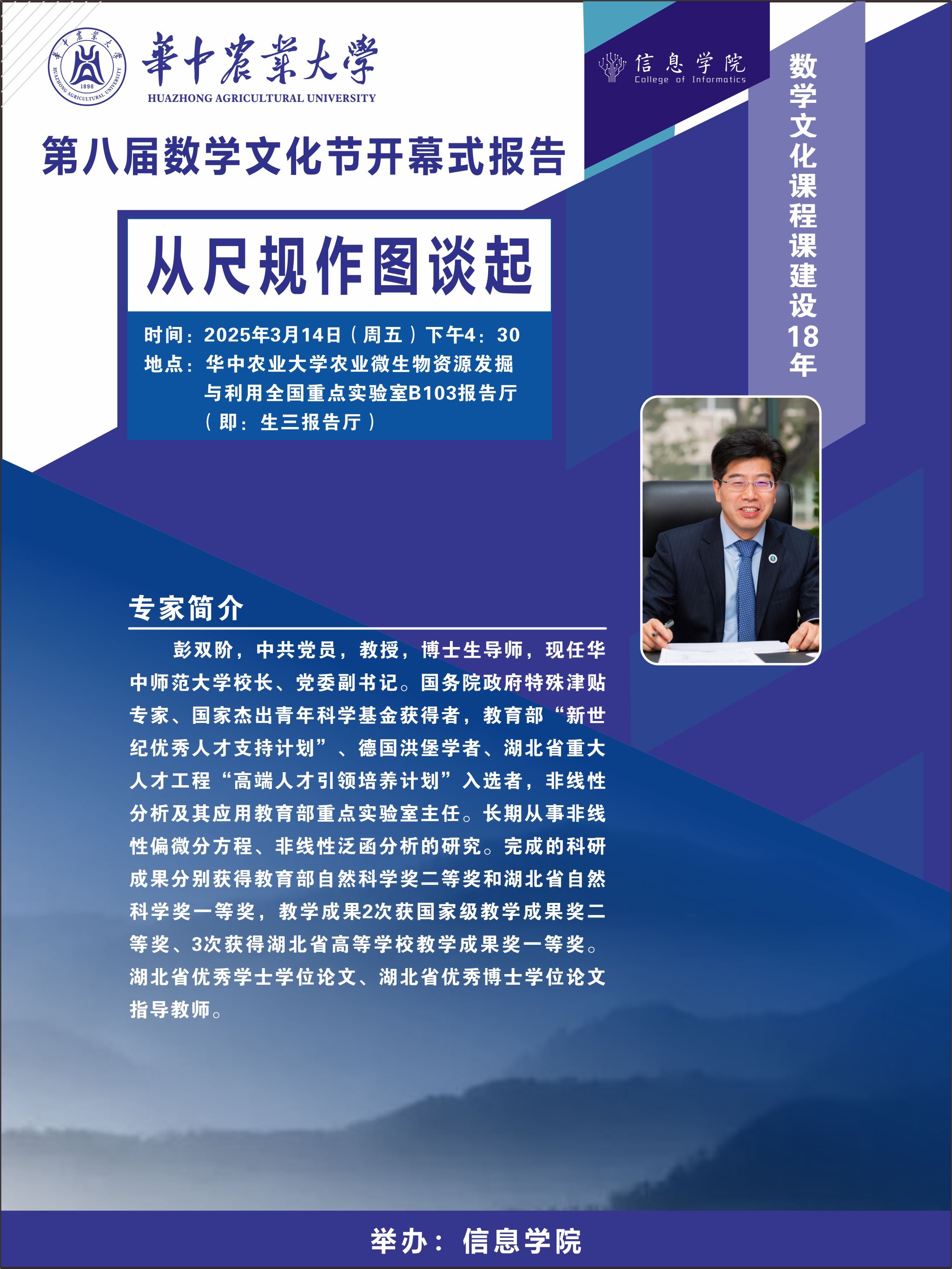 第8届数学文化节开幕式报告:从尺规作图谈起(华中师范大学校长彭双阶教授)